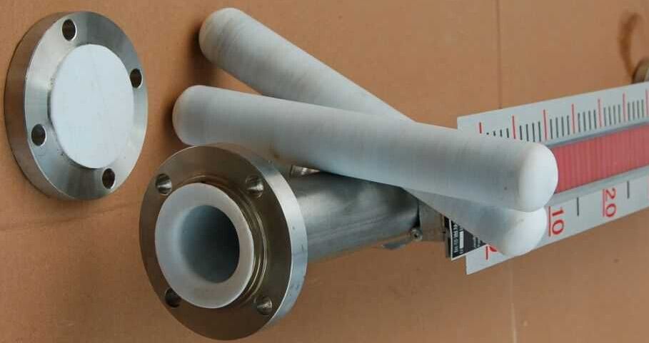 不锈钢内衬四氟防腐型磁翻板液位计采用不锈钢本体内衬聚丙烯(PP)和聚四氟乙烯(PTFE)工艺,有很高的结构强度和耐腐蚀性,可适用于盐酸等酸性液体、碱性液体和有机溶剂。但不适合浓缩硝酸、含氯溶剂、芳香剂、脂肪族等介质液体的测量。侧装式内衬防腐磁翻板液位计有不锈钢主体内衬聚四氟乙烯(PTFE)和不锈钢内衬聚丙烯(PP)两种,适合腐蚀性介质的测量。