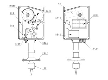 重锤式料位计的主要部件有:重锤、安装法兰、测量机构、吹灰装置、导向轮、钢丝绳、钢丝绳卷筒、摆杆机构、控制单元、电机、测控单元、计量单元和电气接口。